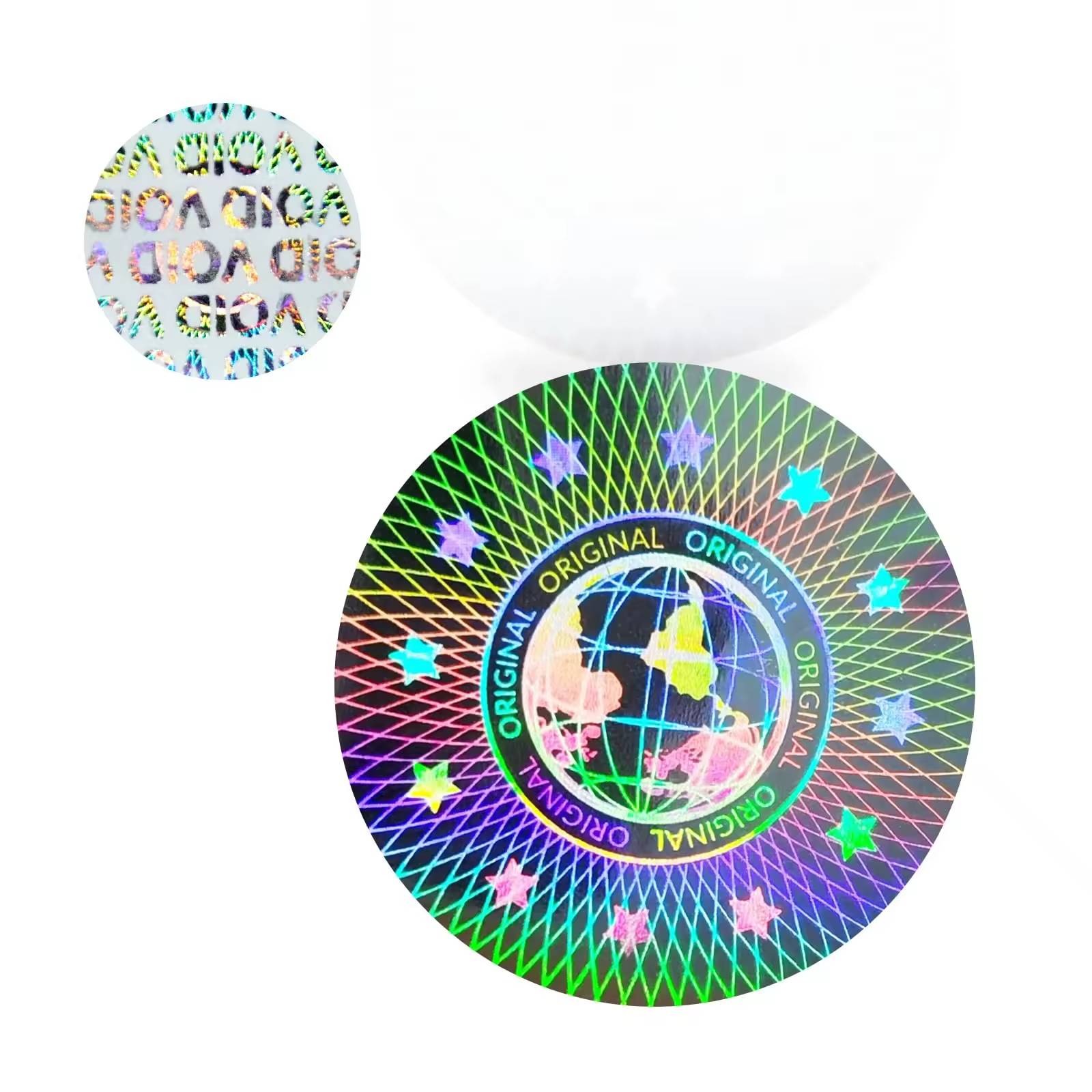 We offer holographic labels in various sizes and shapes to fit your specific product packaging needs.