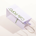 Printed premium paper bags with flat handles. Available in premium white or brown kraft paper. Ideal for cafes, takeaway outlets, catering outlets and other retail stores.