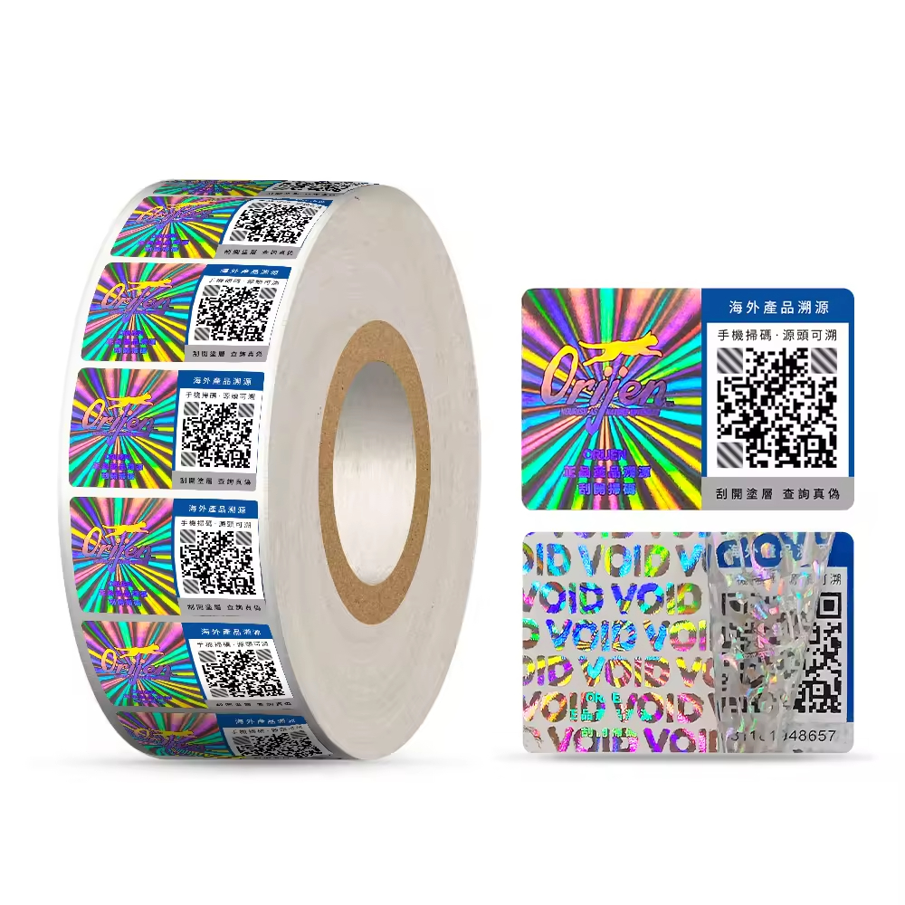 QR code hologram sticker lable with series number